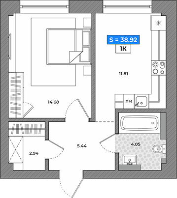 1-комнатная, 48,5 м2